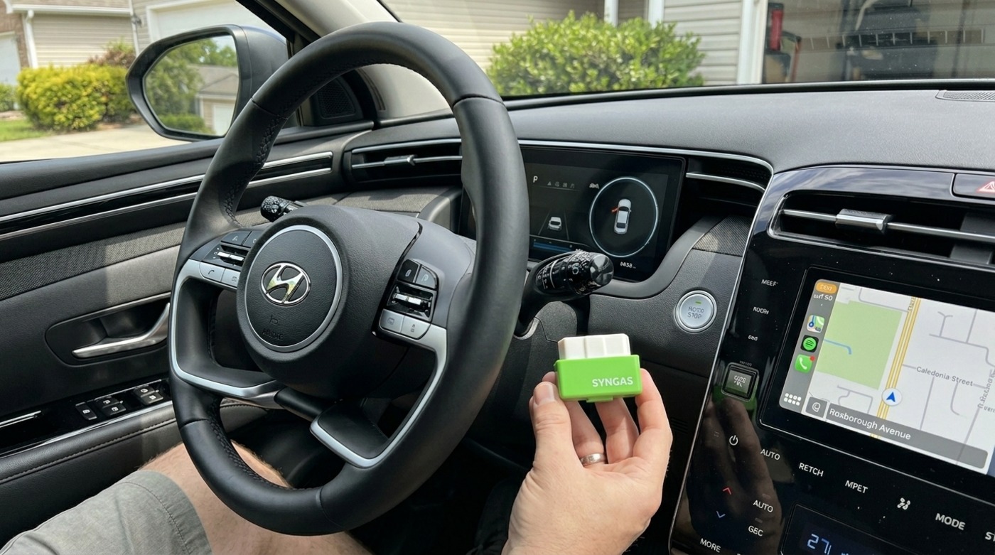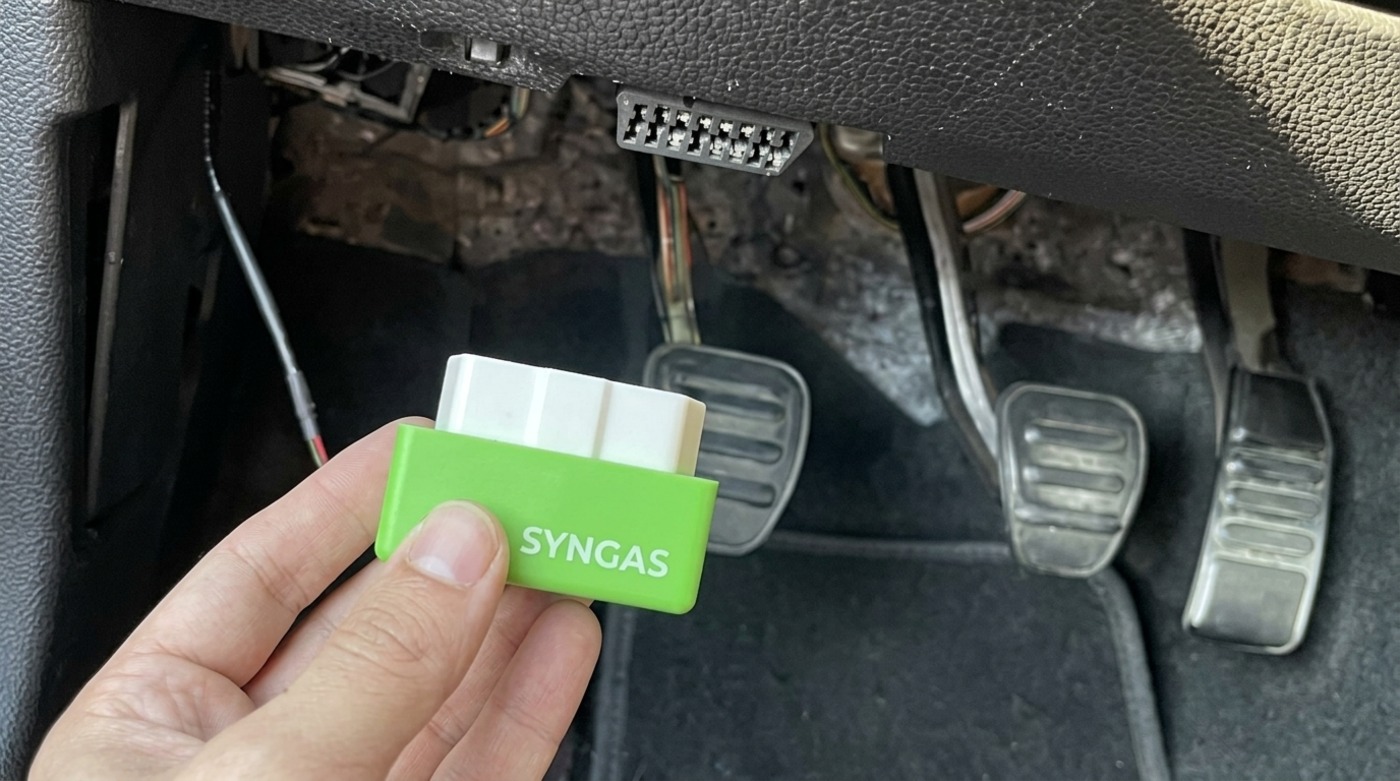 ההתקנה באמת קלה. אם אתה יכול לחבר מטען לטלפון, אתה יכול להתקין SynGas. יציאת OBD2 נמצאת בדרך כלל בהישג יד ממושב הנהג — לעתים קרובות ממש מתחת להגה. כל העניין לוקח פחות משלושים שניות.
